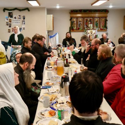 Our community rejoiced in the presence of all who came to celebrate this bright and meaningful feast with us, uniting in the glorification of God and His saint, St. Nicholas. The Hierarchical Polyelion Service was deeply prayerful and uplifting, with particularly beautiful singing and readings. After the service, the sisterhood offered a festive meal filled with many delights. A group of parishioners also prepared and sang a song in honor of St. Nicholas, and many hymns—both liturgical and non-liturgical—were sung throughout the celebration.